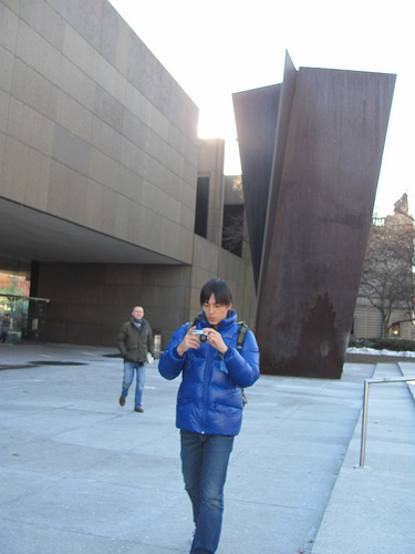 photos captures this relationship very well. Nice work! But it's interesting to note that the Carnegie Museum allows photographers to take pictures of Serra's work, but Richard Serra's assertion of copyright prevents the Carnegie Museum of Art from showing a photograph of the work on the museum Web site, or making an image of the work which the museum owns available to scholars and teachers without a lengthy contractual process. I'm not sure how Hanneorla has addressed Serra's copyright on the work, except that they offer to take down any image they're asked to. I am uncertain whether they know that their arrangement with Getty Images means that same courtesy isn't extended to people who use their work without license from Getty Images.